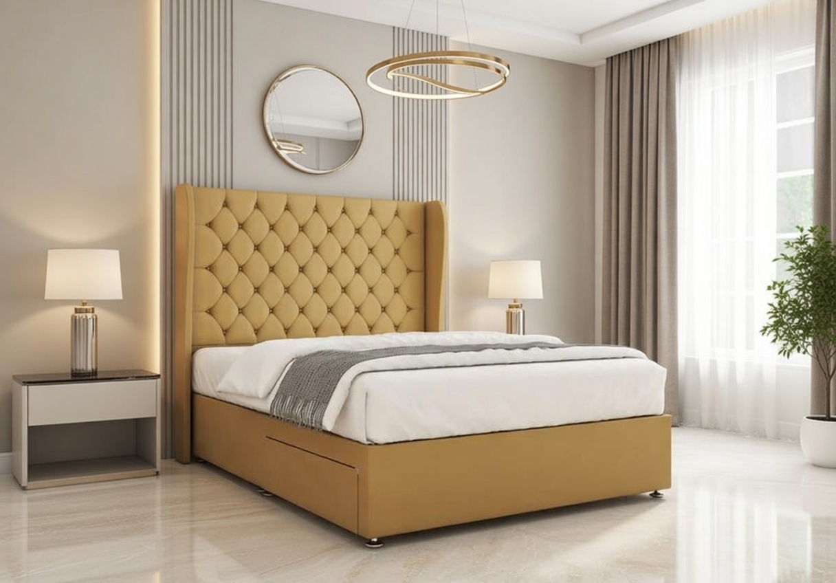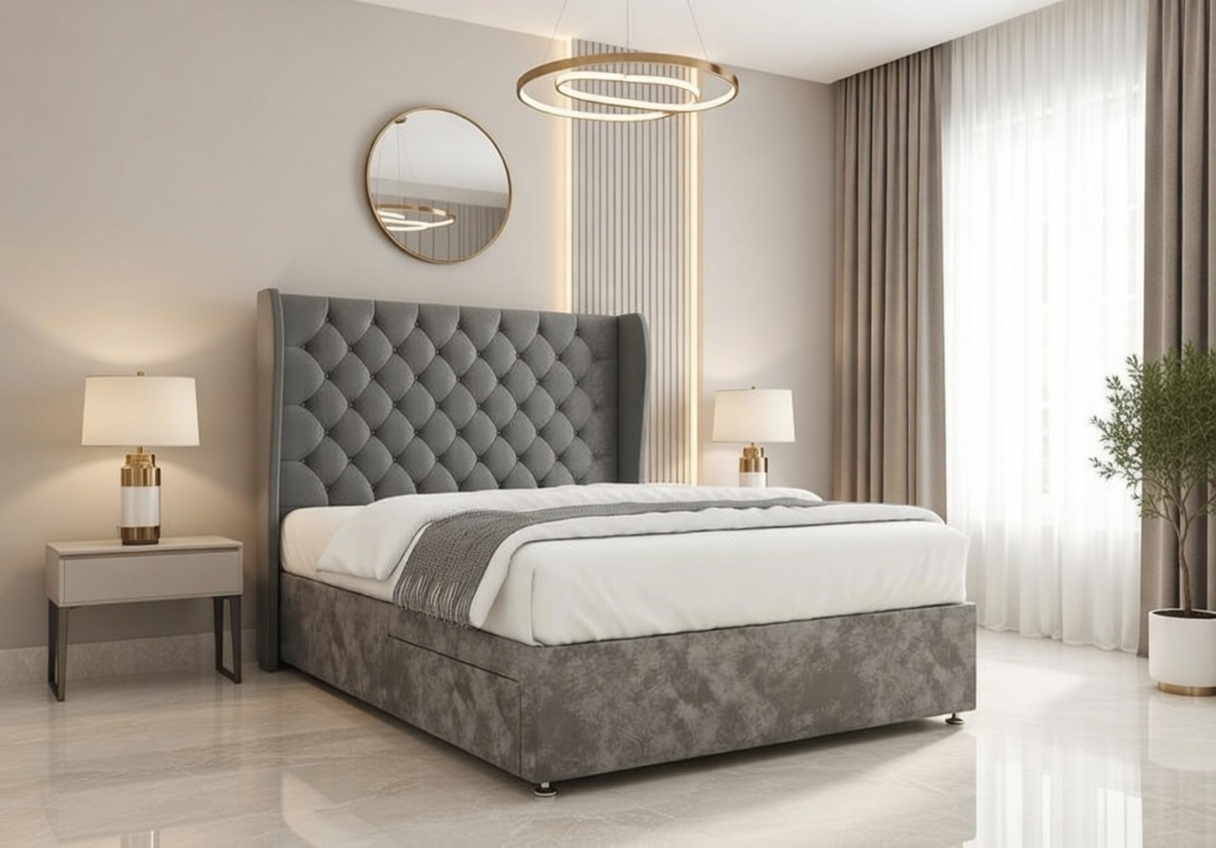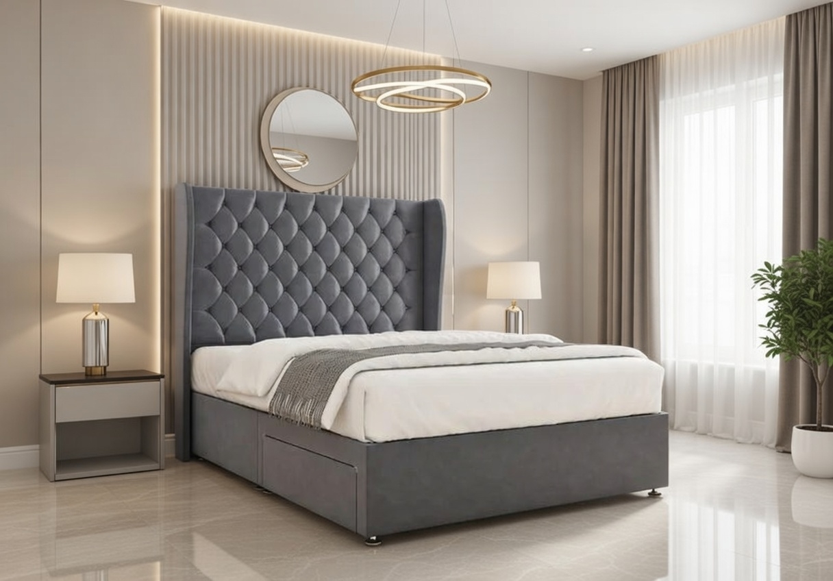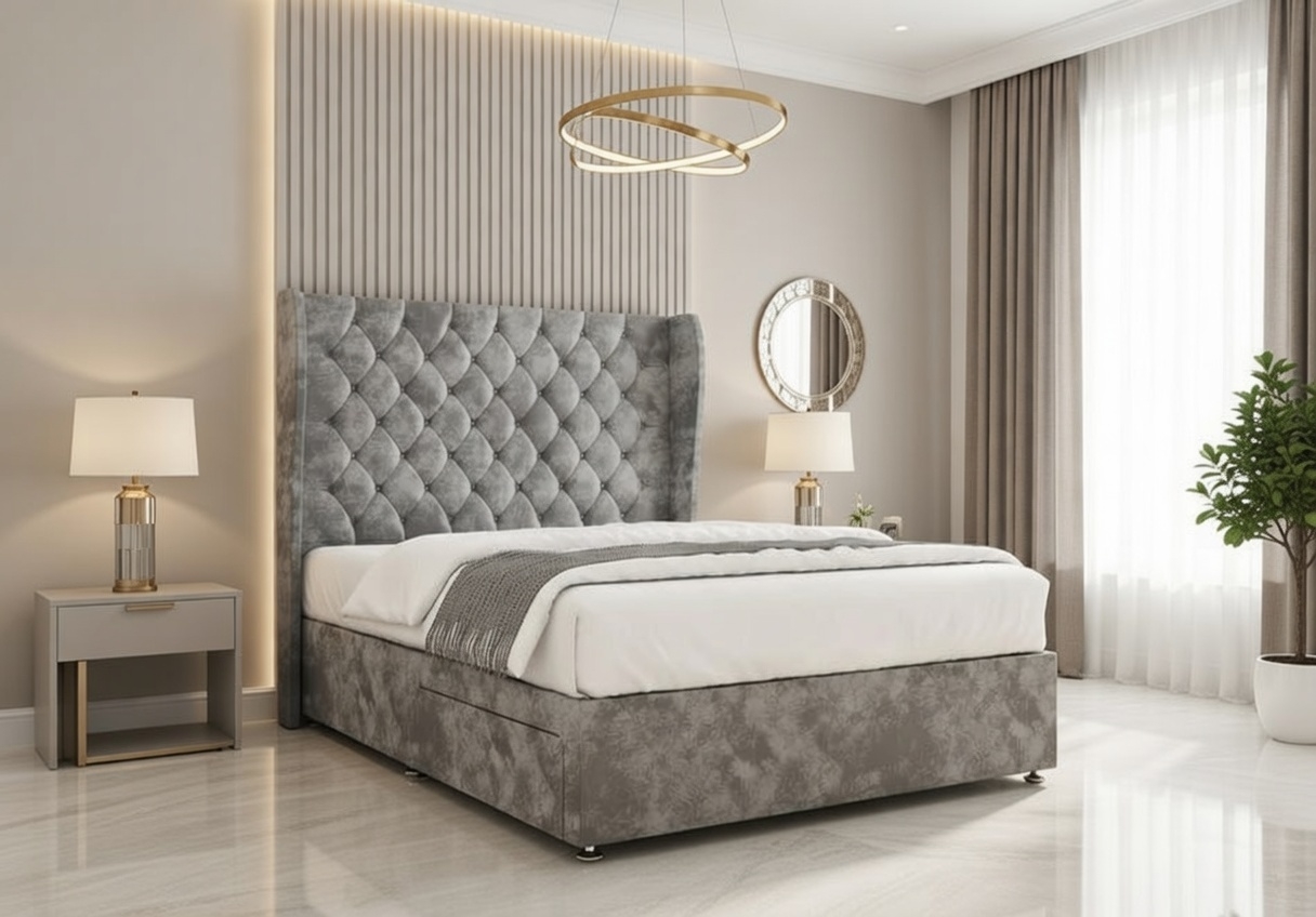 Available in velvety soft or richly textured fabrics, the Amelia Divan Bed enhances both comfort and visual appeal. With a wide selection of colours, it effortlessly complements both classic and modern bedroom interiors.