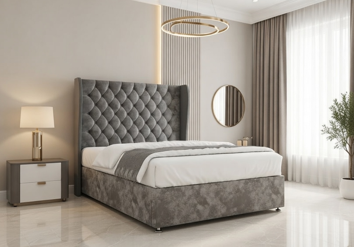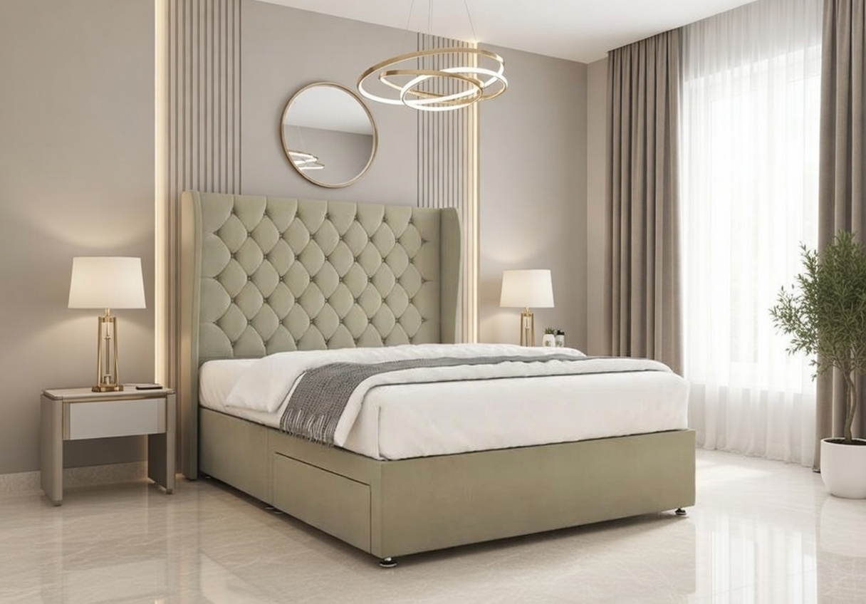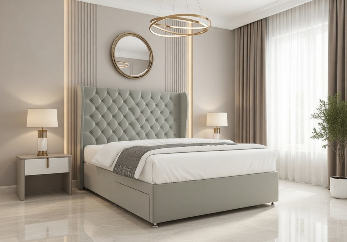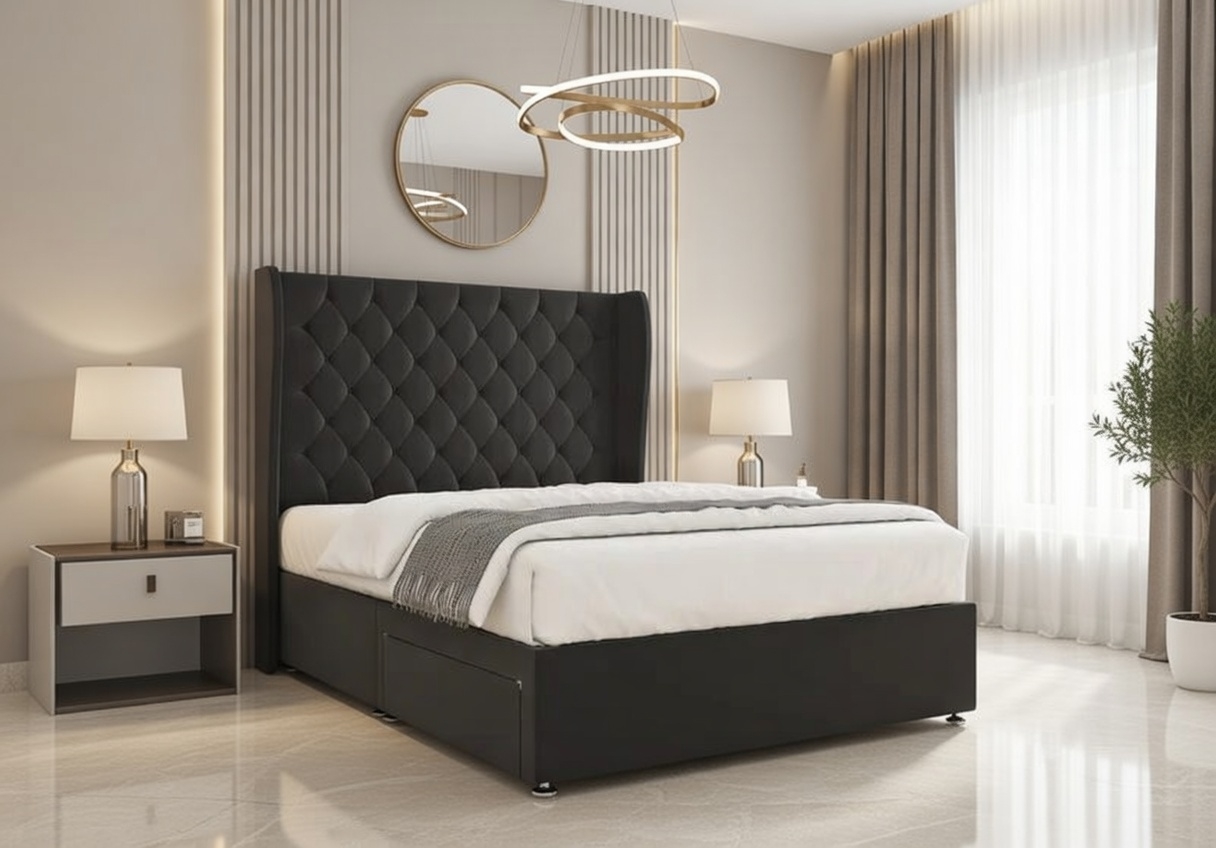 Available in velvety soft or richly textured fabrics, the Amelia Divan Bed enhances both comfort and visual appeal. With a wide selection of colours, it effortlessly complements both classic and modern bedroom interiors.