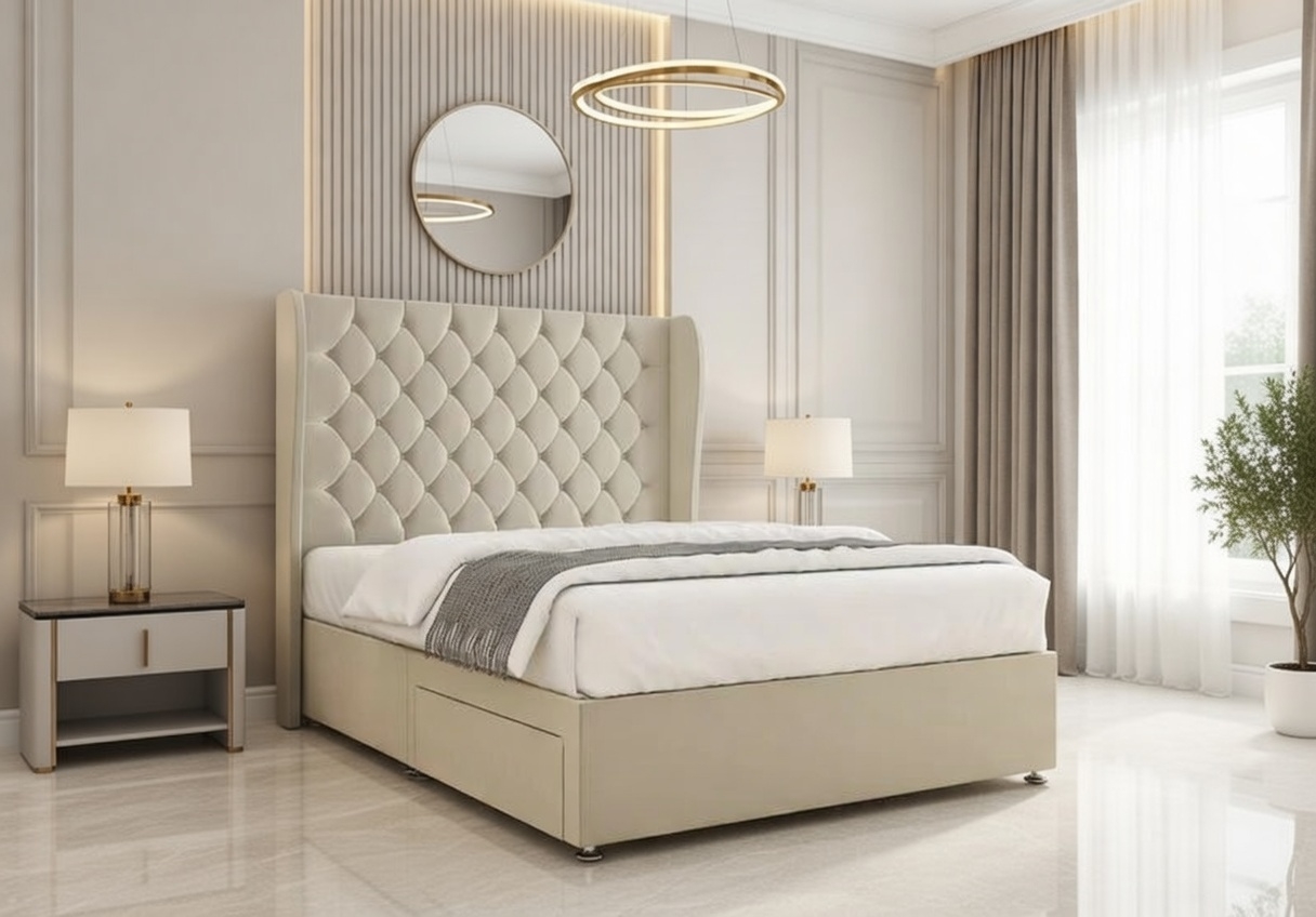 Transform your bedroom with the sophisticated and beautifully crafted Amelia Divan Bed. Expertly handmade in the UK using high-quality materials and components, this divan bed is designed to deliver exceptional comfort, durability, and long-lasting support. It fully complies with UK fire safety regulations, ensuring both quality and safety.