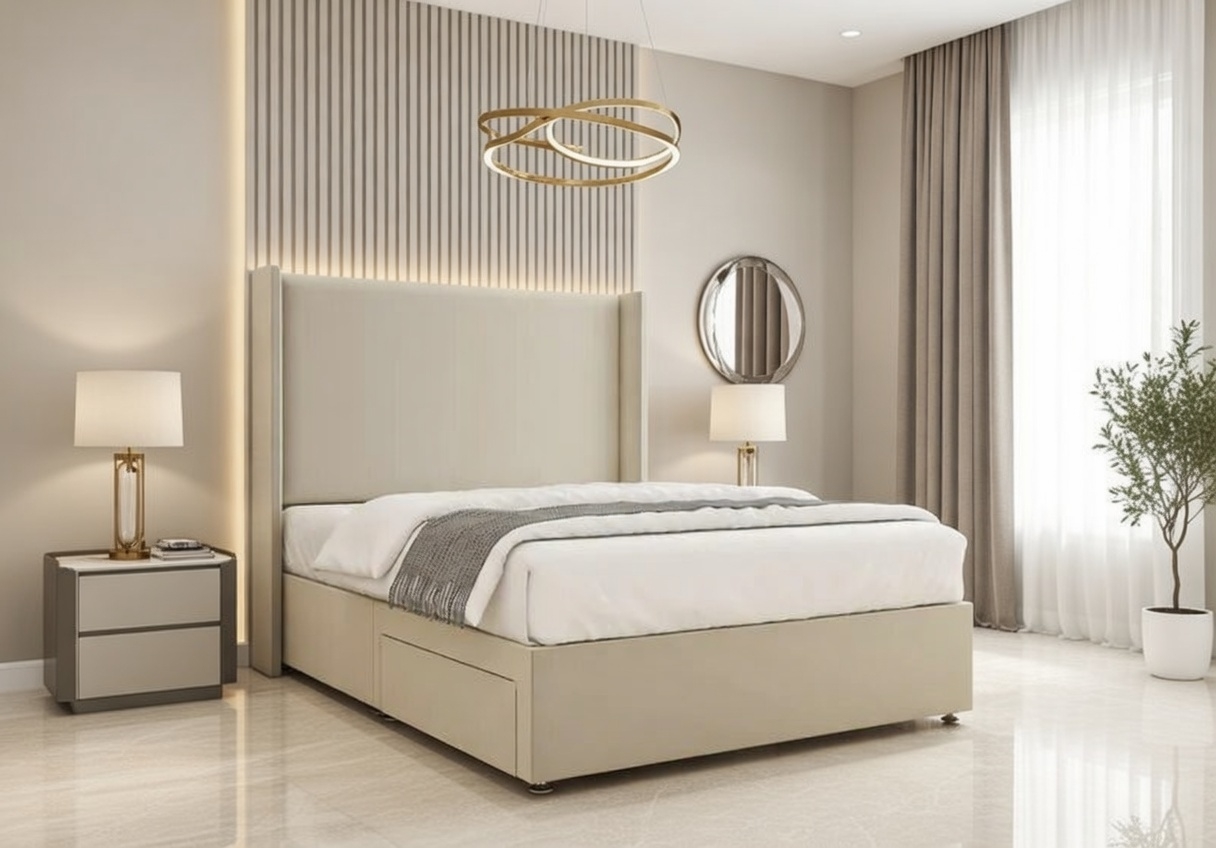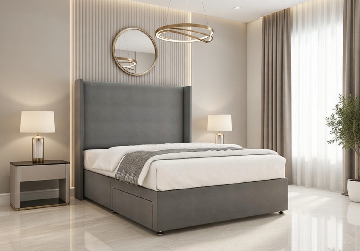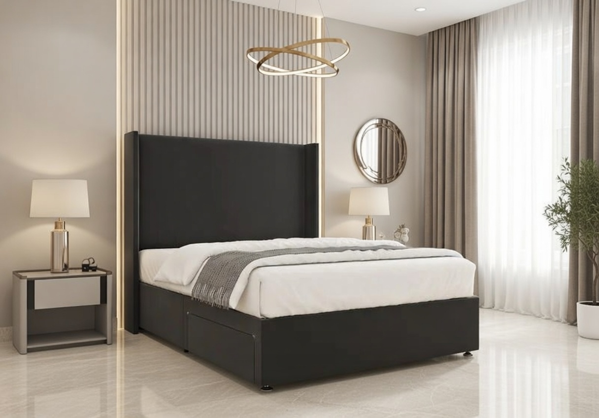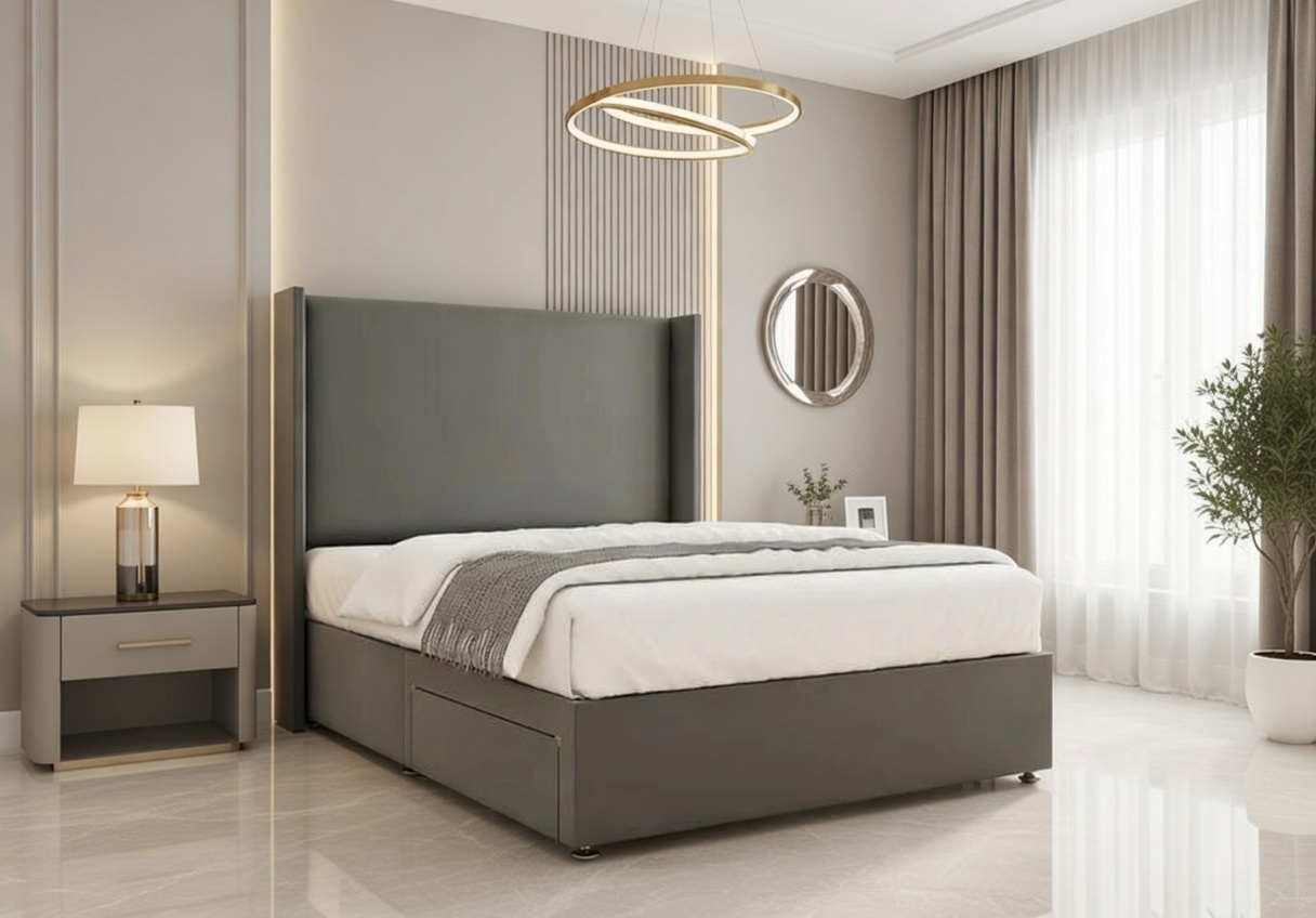 Bring style, comfort, and practicality to your bedroom with the Austin Divan Bed. Expertly handcrafted in the UK using high-quality materials, this divan bed is designed to provide long-lasting support, durability, and luxury. It also meets all UK fire safety regulations, ensuring both safety and quality.