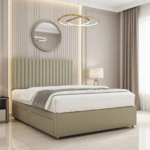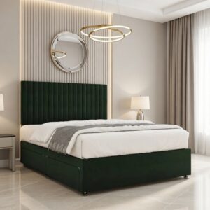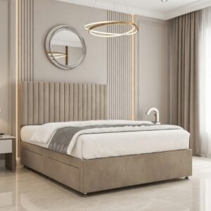 The Brooke Divan Bed is a beautifully handcrafted, UK-made bed designed for modern style, comfort, and smart storage. Customisable in 20 colours, 6 sizes, and optional drawer configurations, it features a sleek 12″ divan base with chrome legs and luxurious fabric finishes. Built with premium materials and compliant with UK fire regulations, it includes a 24-month warranty for complete peace of mind.