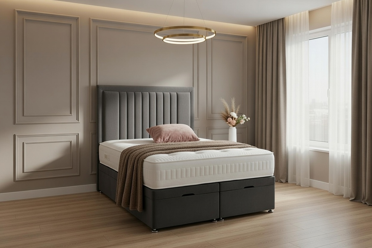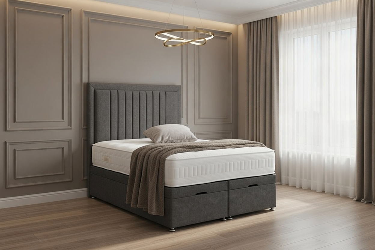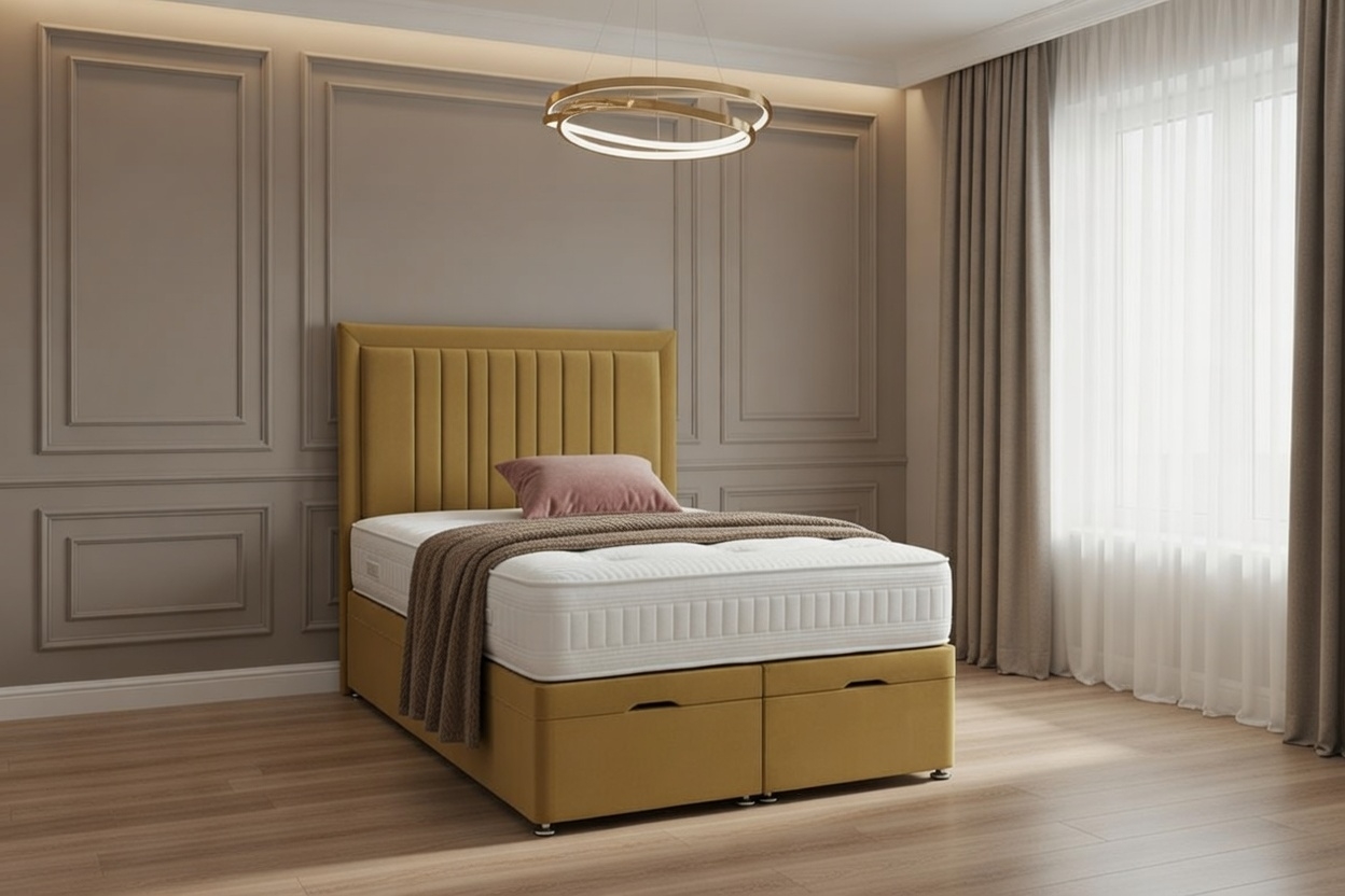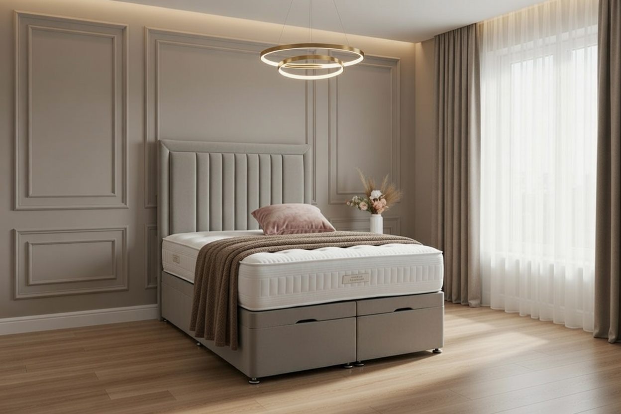 Maximise your bedroom storage with the Canes Divan Ottoman, the perfect blend of elegance and efficiency. This premium end-lift ottoman divan provides double the storage space of traditional 4-drawer divans, making it ideal for bedding, seasonal items, or personal belongings.