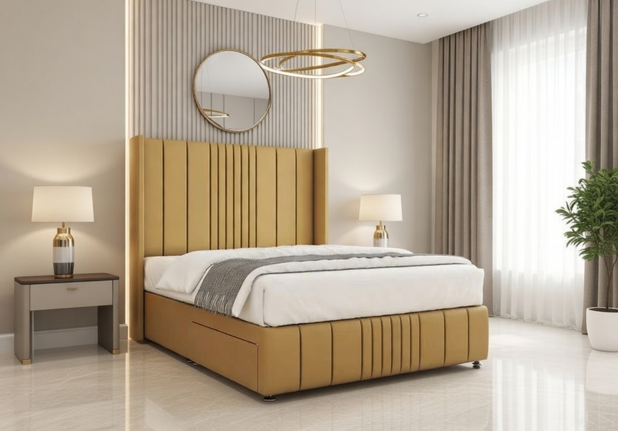 54″ Floor-Standing Headboard – Extends from the base to the floor, creating a bold and eye-catching statement.