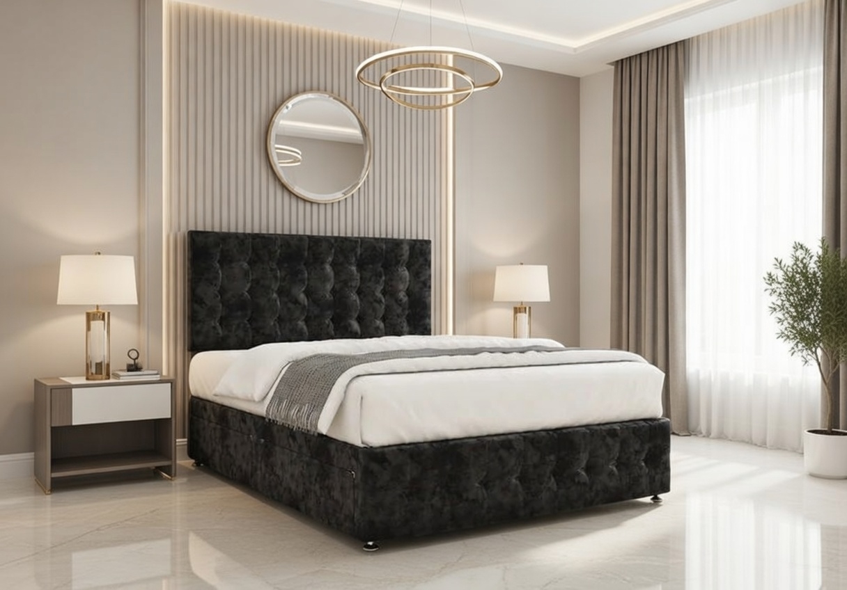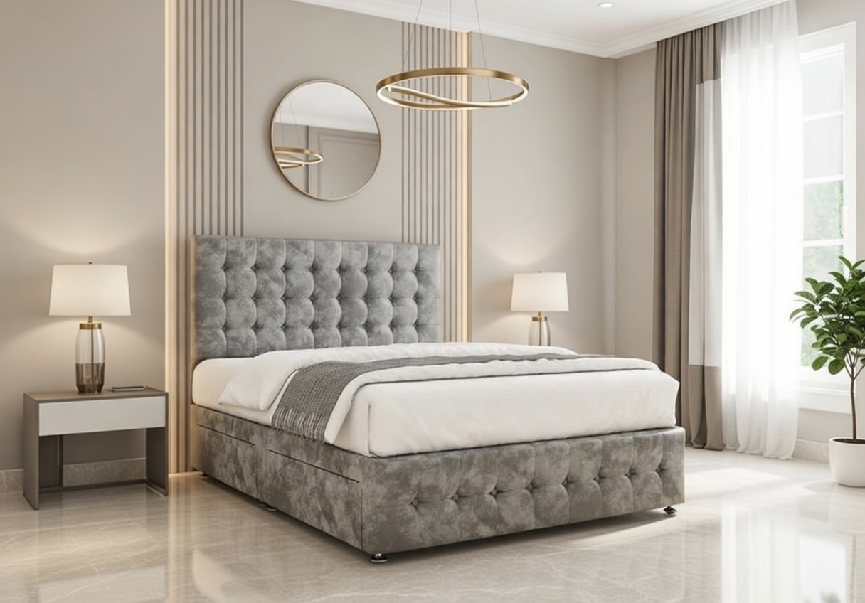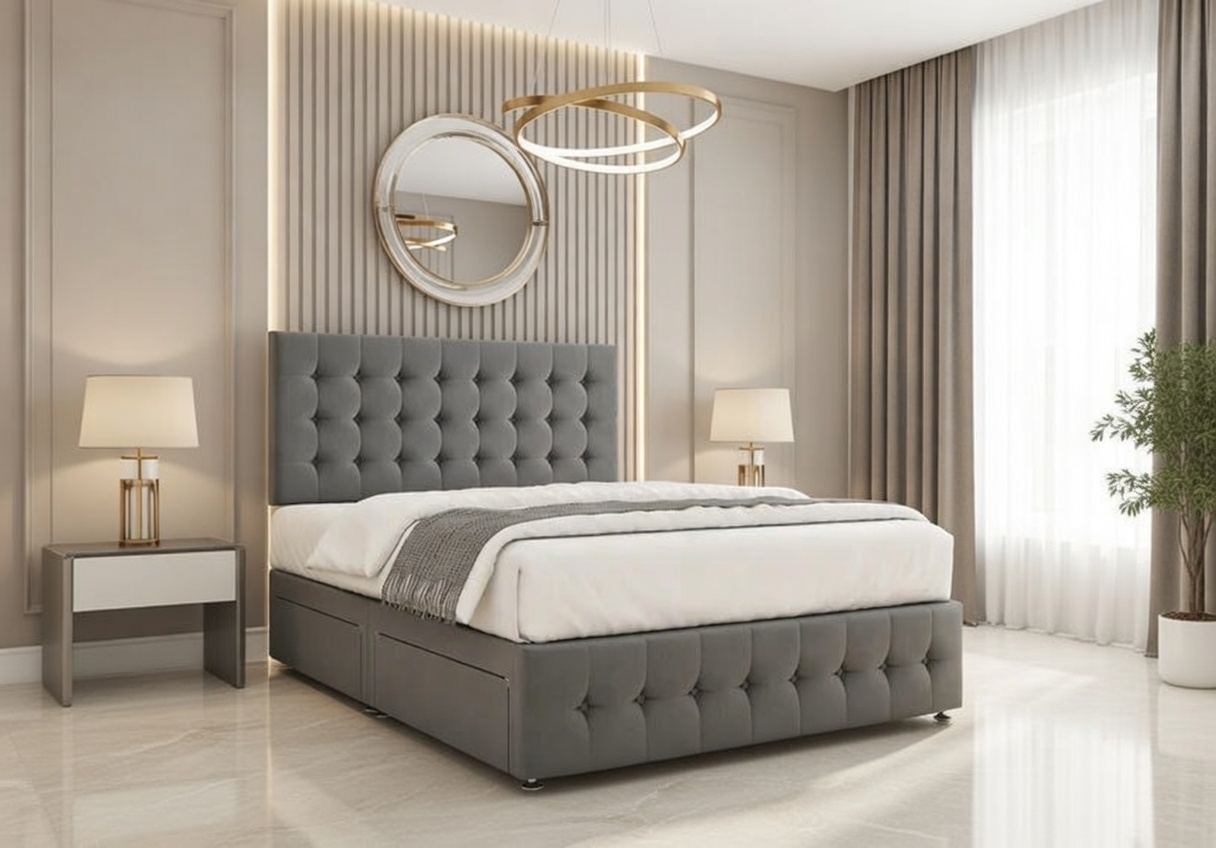 Available in velvety soft or richly textured fabrics, the Eva Divan Bed enhances both comfort and sophistication. With a wide range of colour options, it effortlessly complements any bedroom décor.