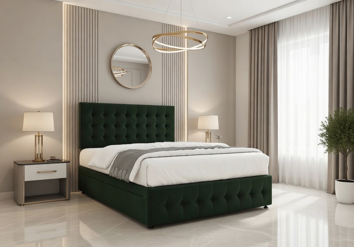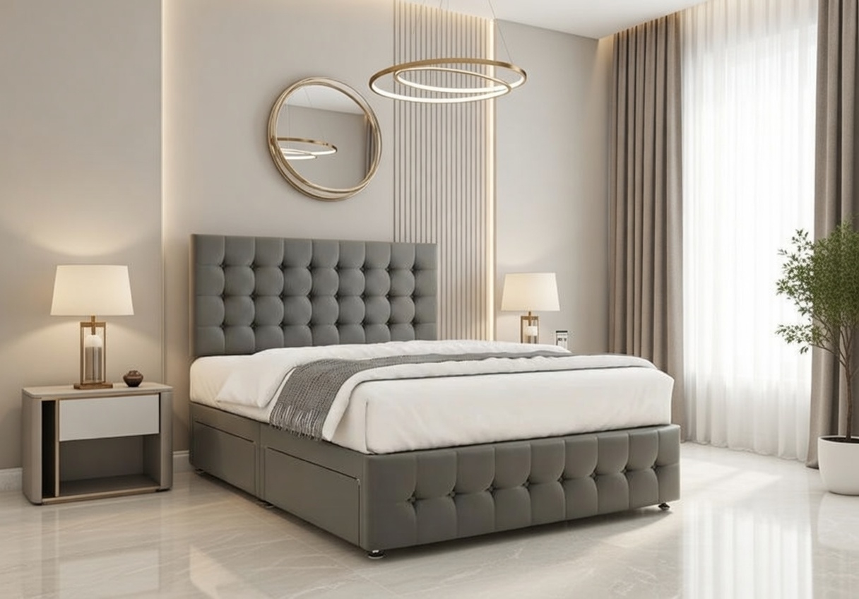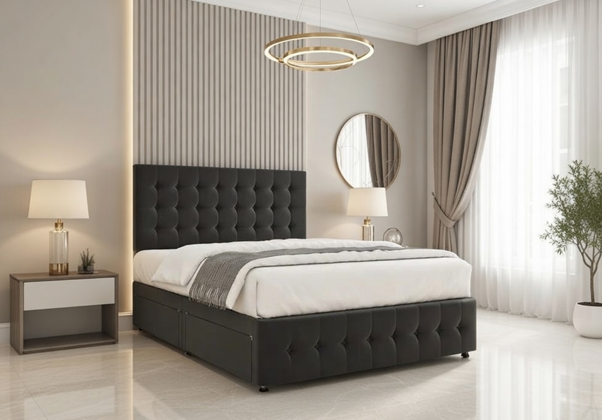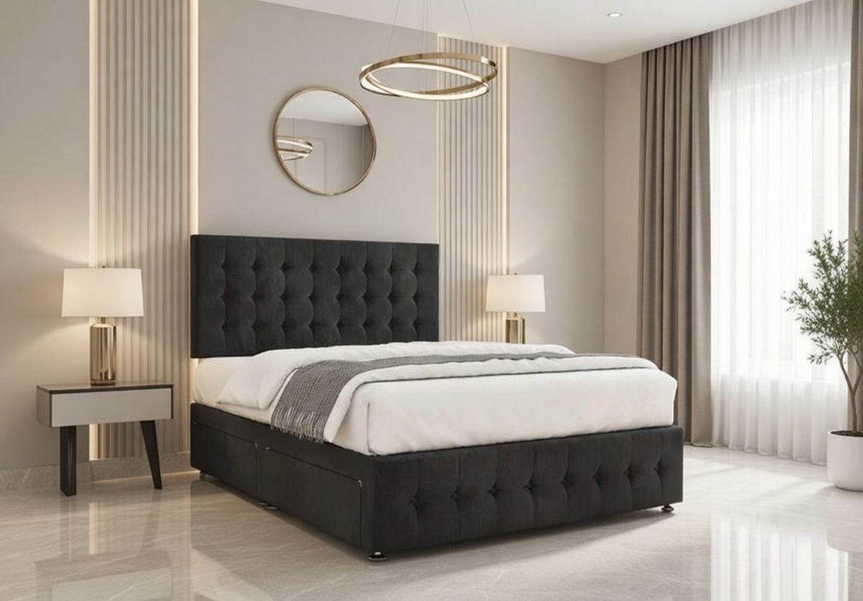 Available in velvety soft or richly textured fabrics, the Eva Divan Bed enhances both comfort and sophistication. With a wide range of colour options, it effortlessly complements any bedroom décor.