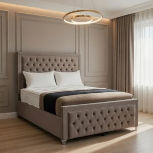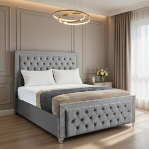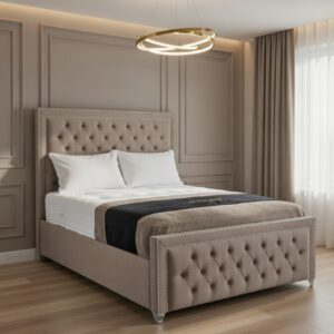 Introducing the Julia Bed Frame, a perfect fusion of comfort, elegance, and practicality. Handcrafted in Yorkshire, this upholstered bed frame features a robust solid timber structure, providing long-lasting durability while adding a sophisticated centerpiece to your bedroom.